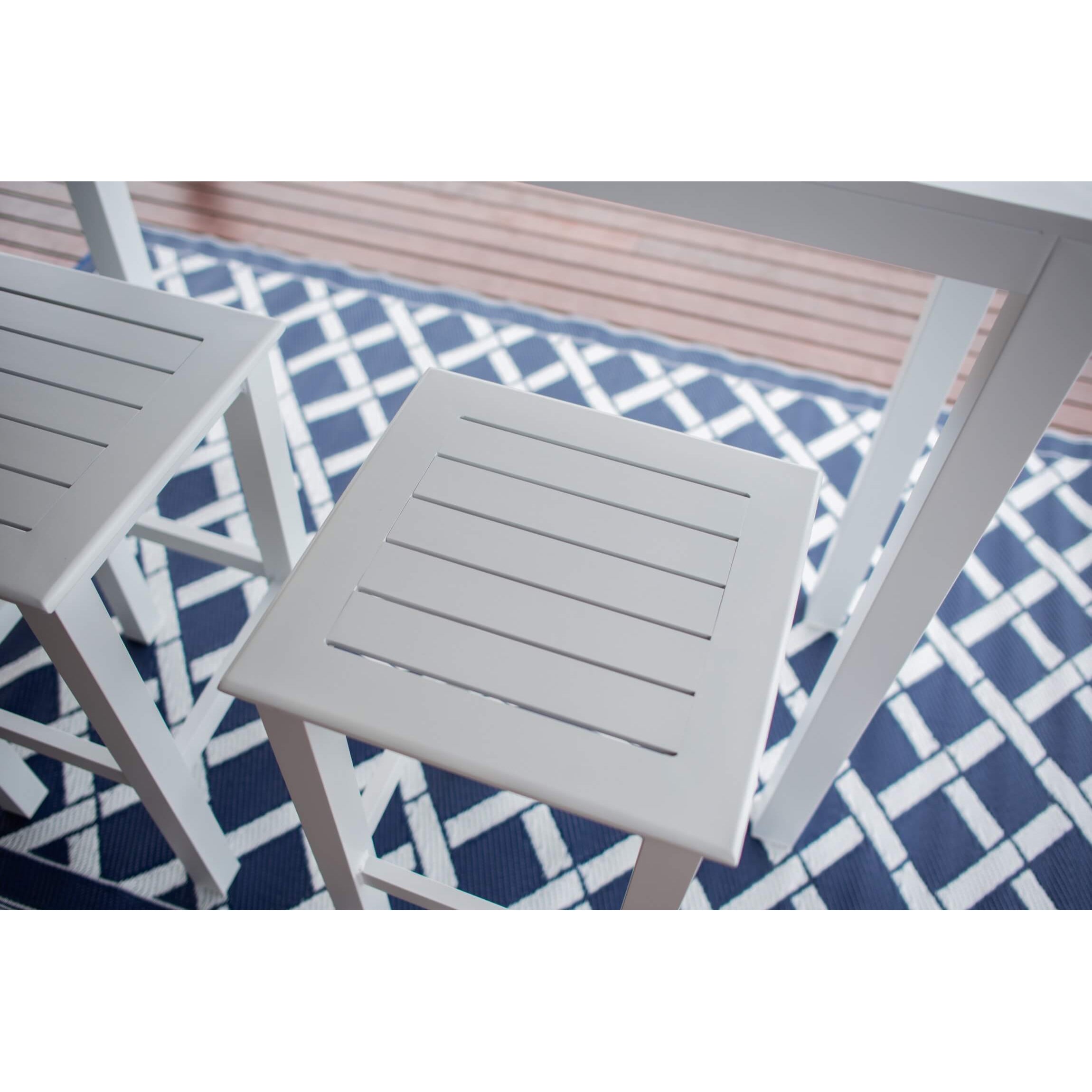 This outdoor setting includes 1 x Aria Bar Table and 2 x Kirra Bar Stools.