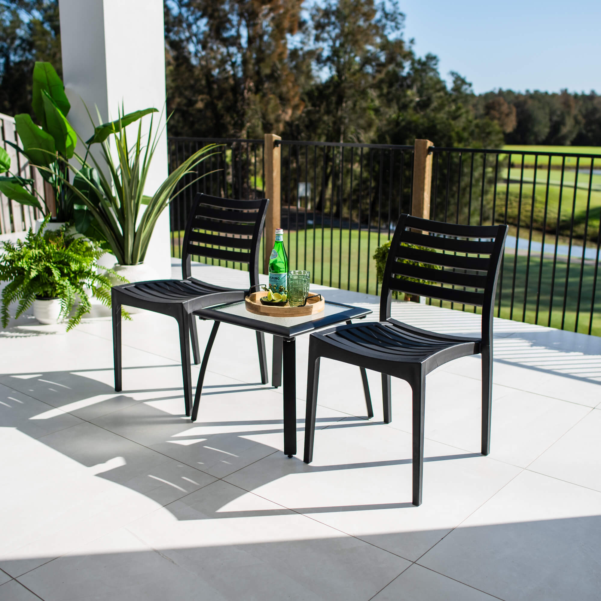 The 3pce Apollo Shelby Bistro Set is a great addition to any outdoor entertaining area.