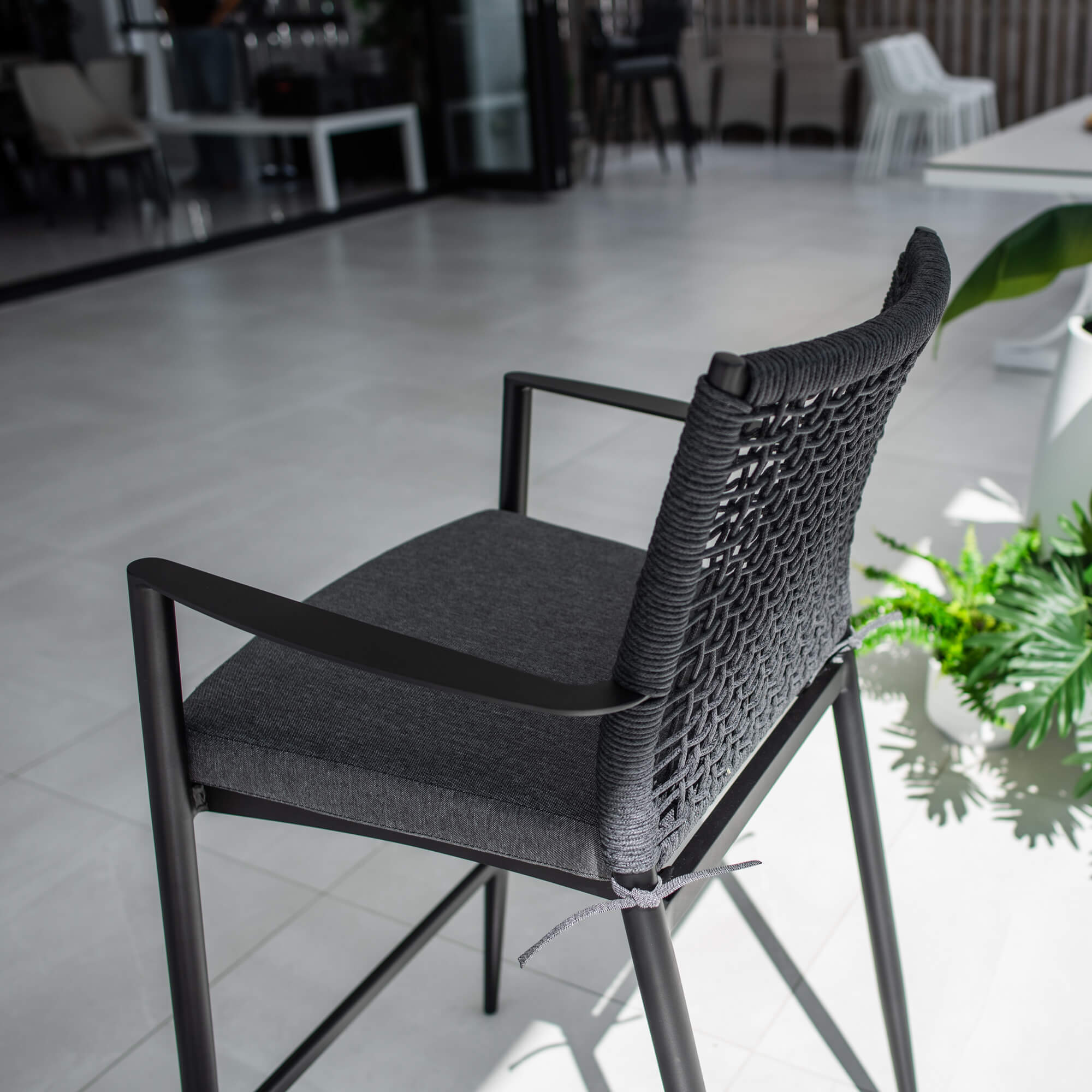 Crafted with Powder Coated Aluminium frames and a Textilene Woven Rope, the Vienna Rope Chair is the perfect combination of durability and style. This barstool also includes a seat cushion to provide extra comfort. Mix and match this outdoor barstool with any of our outdoor bar tables for the perfect bar set.