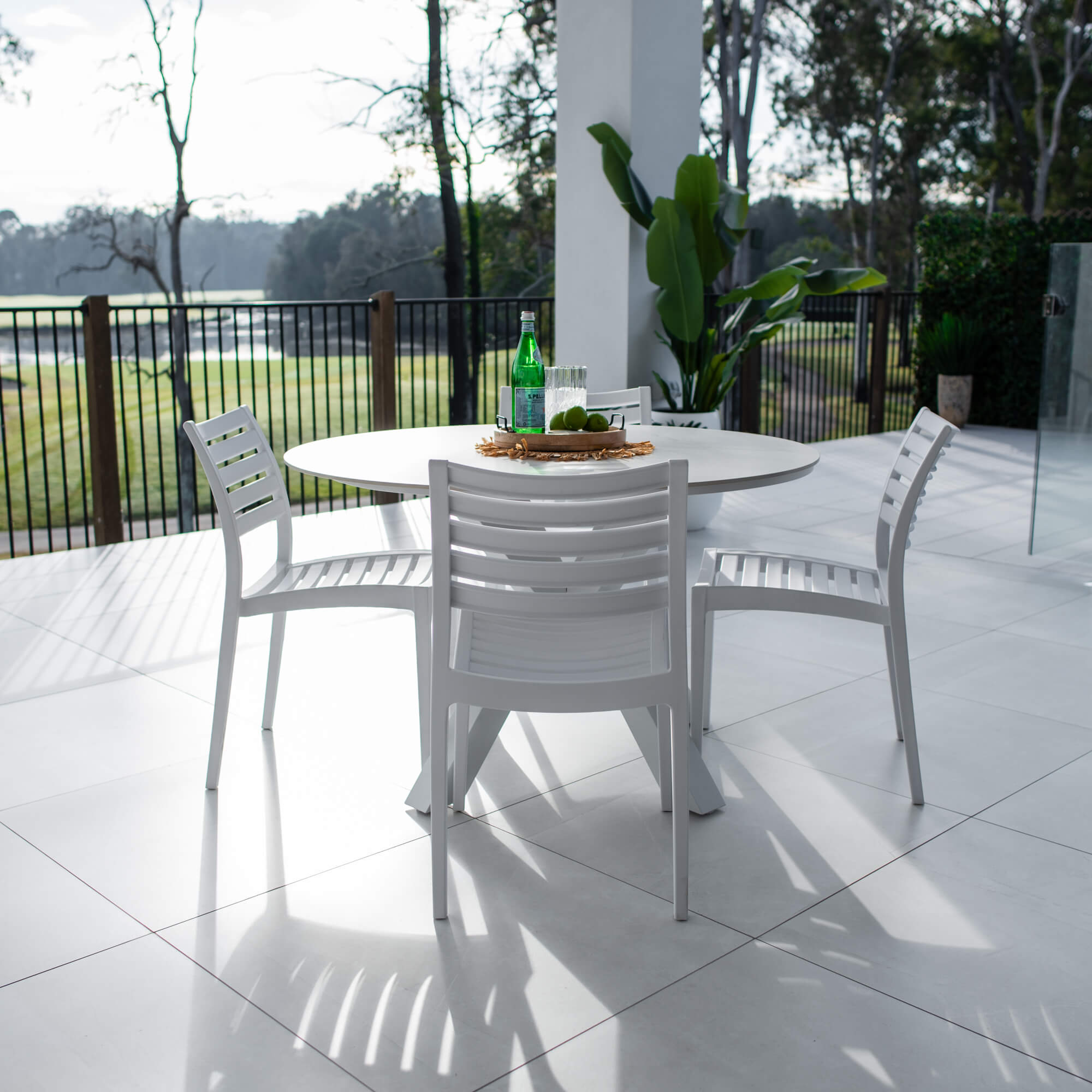 Crafted with Aluminium Frames and a Sintered Stone Top, the Malibu Table provides style and durability. The Apollo Chairs are made with Polypropylene Resin Frames to provide support and strength with UV stabilizers to protect against the harsh sun. The Apollo Chair is also a great option for windy outdoor areas.