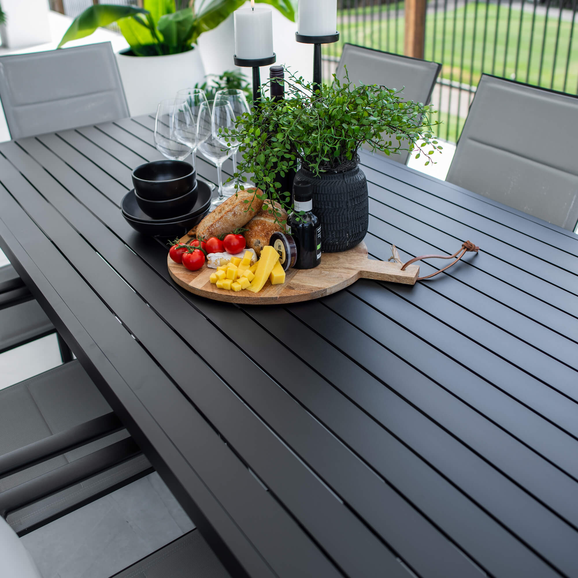 This outdoor setting includes 1 x Bergen Dining Table and 8 x Margot Dining Chairs