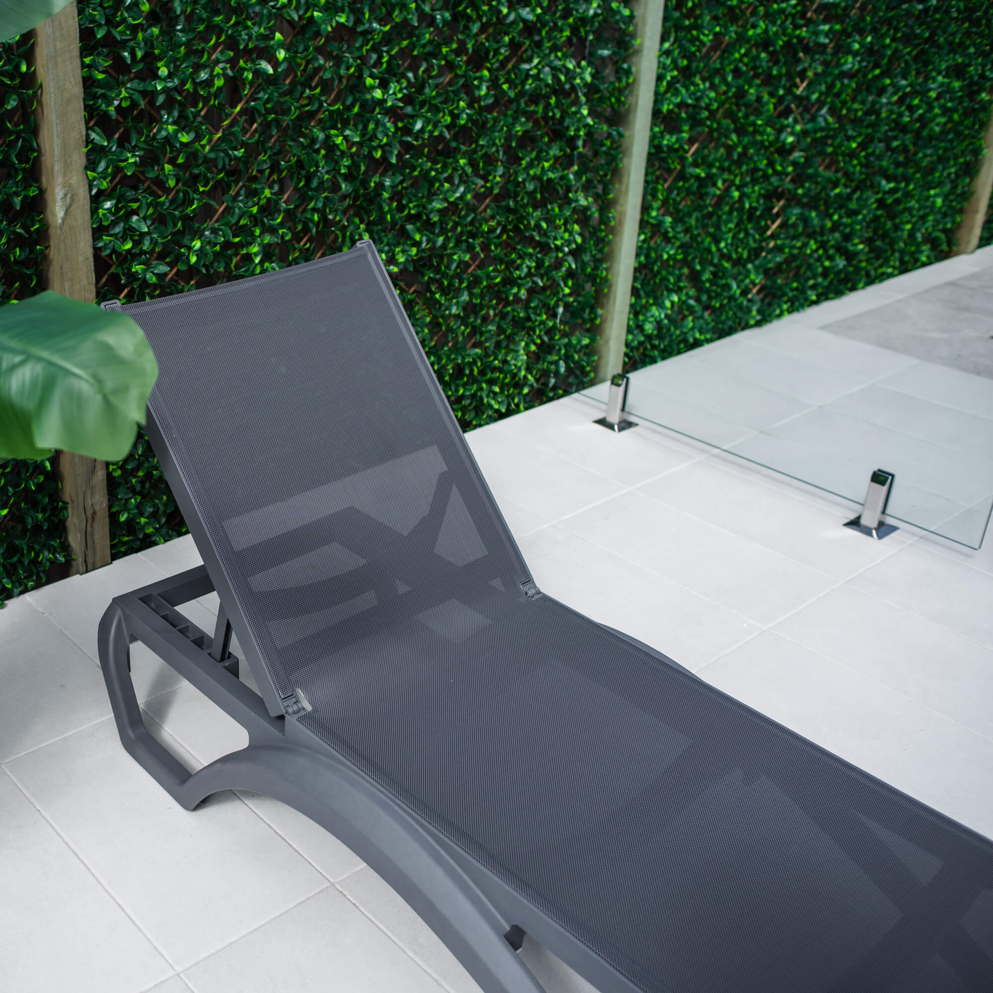 The Verona Sun Lounge is a popular lounge because of its quality and style. Crafted with Polypropylene Resin frames and a Textilene Sling, the sun lounge is fully assembled with an adjustable back to change the height of the headrest.