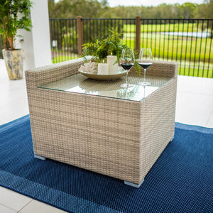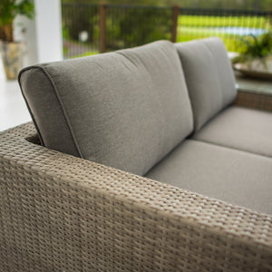 The Cuban Modular Lounge Set is one of our best selling lounges for comfort and quality. Crafted with Power Coated Aluminium frames and PE Wicker, the lounge is fully welded so you don't have to worry about any screws. The cushions are made from a Polyester fabric which has some degree of UV protection. However, for longevity of your lounge we recommend placing this lounge in a covered area.