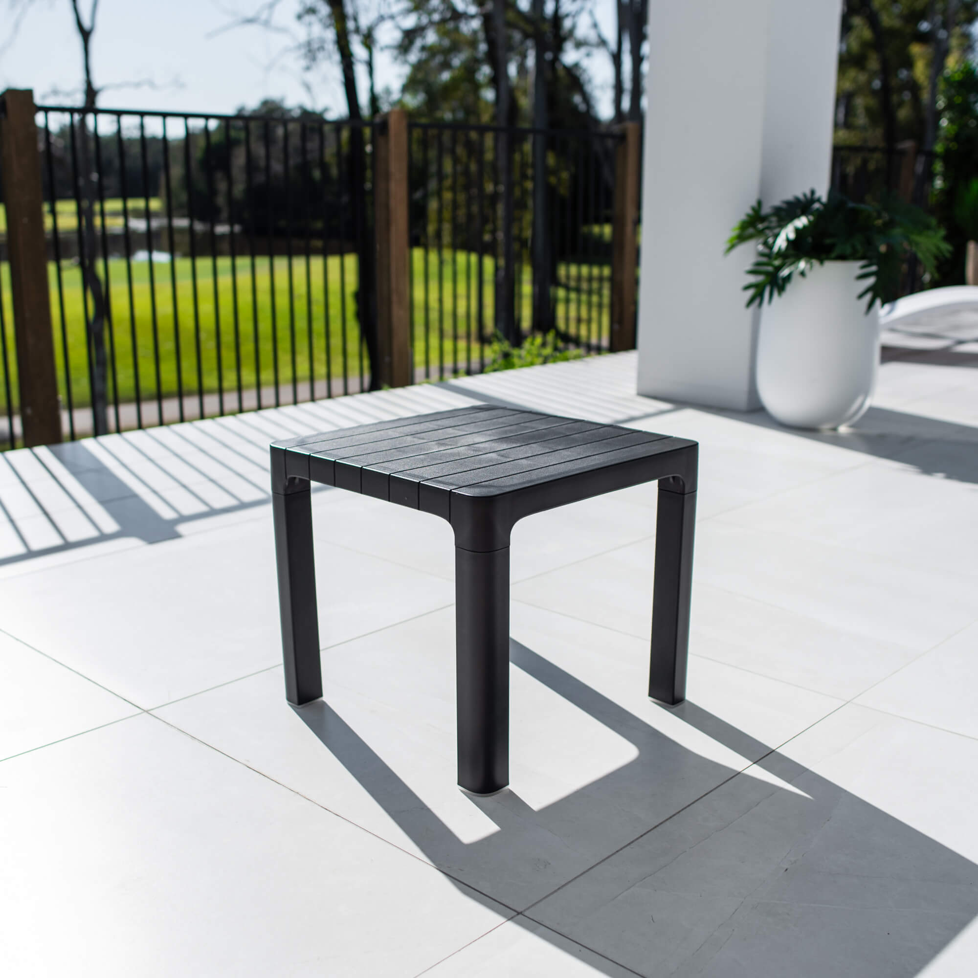 Crafted out of a Polypropylene Resin material, the Bali Side Table is the perfect combination of durability and style. Mix and match this outdoor side table with any of our outdoor chairs for the perfect patio set or with our sun loungers for those sunny days by the pool.