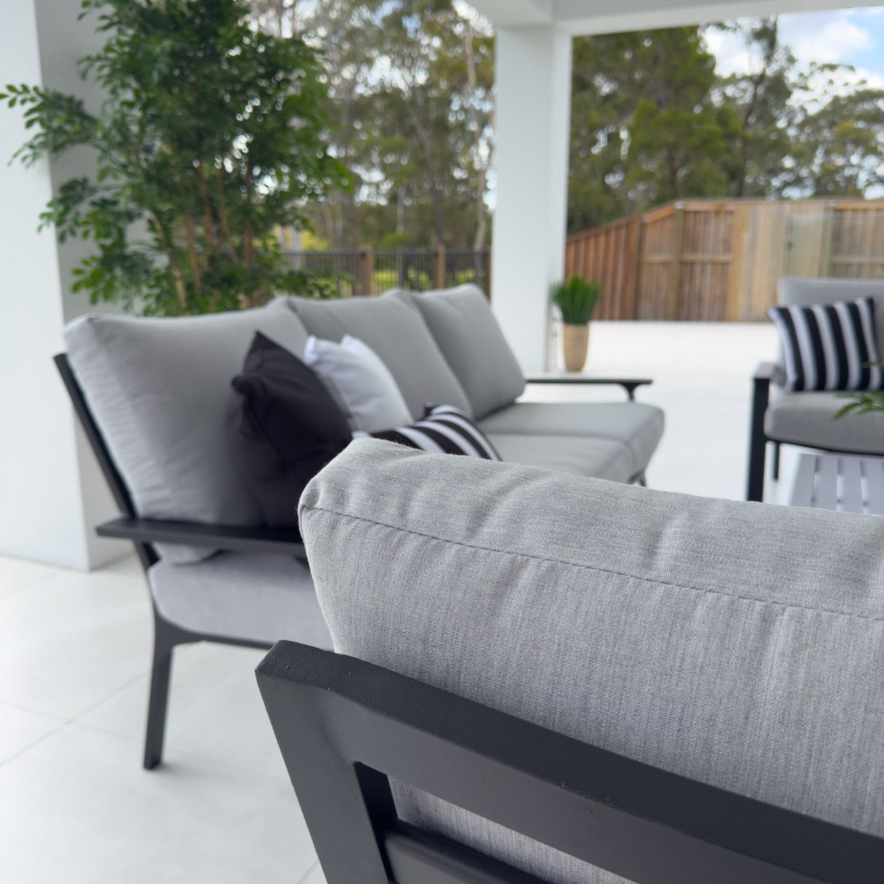 The Bermuda Lounge Set is one of our best selling lounges for comfort and quality. Crafted with Power Coated Aluminium frames, the lounge is fully welded so you don't have to worry about any screws. The cushions are made from a marine-grade Sunbrella fabric which is known for its 5 year warranty against fading due to its ability to be fully exposed to the UV and durability against chemicals such as chlorine.