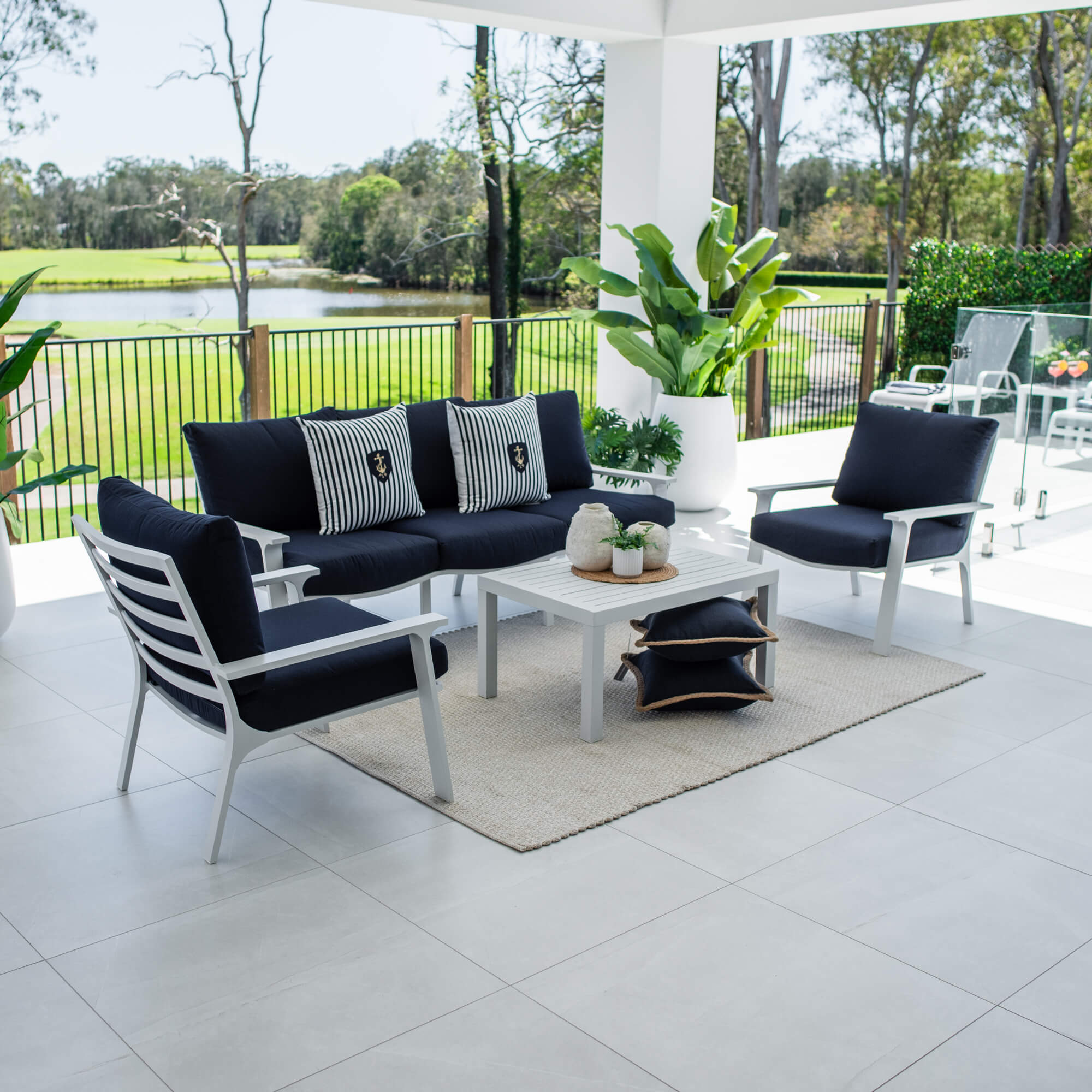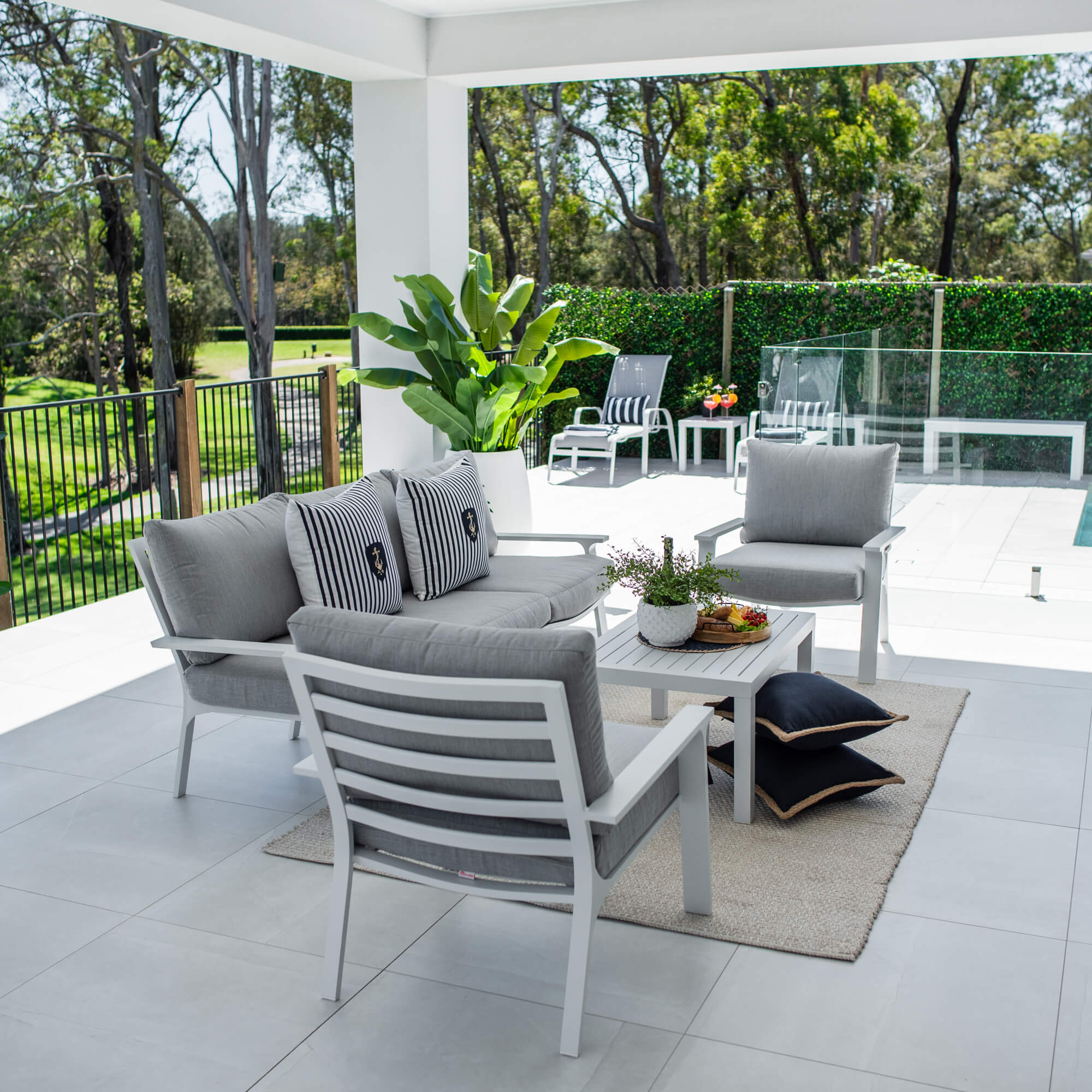 This lounge setting is a great rustproof option to withstand the harsh Australian climate and perfect for relaxing in the warm weather.