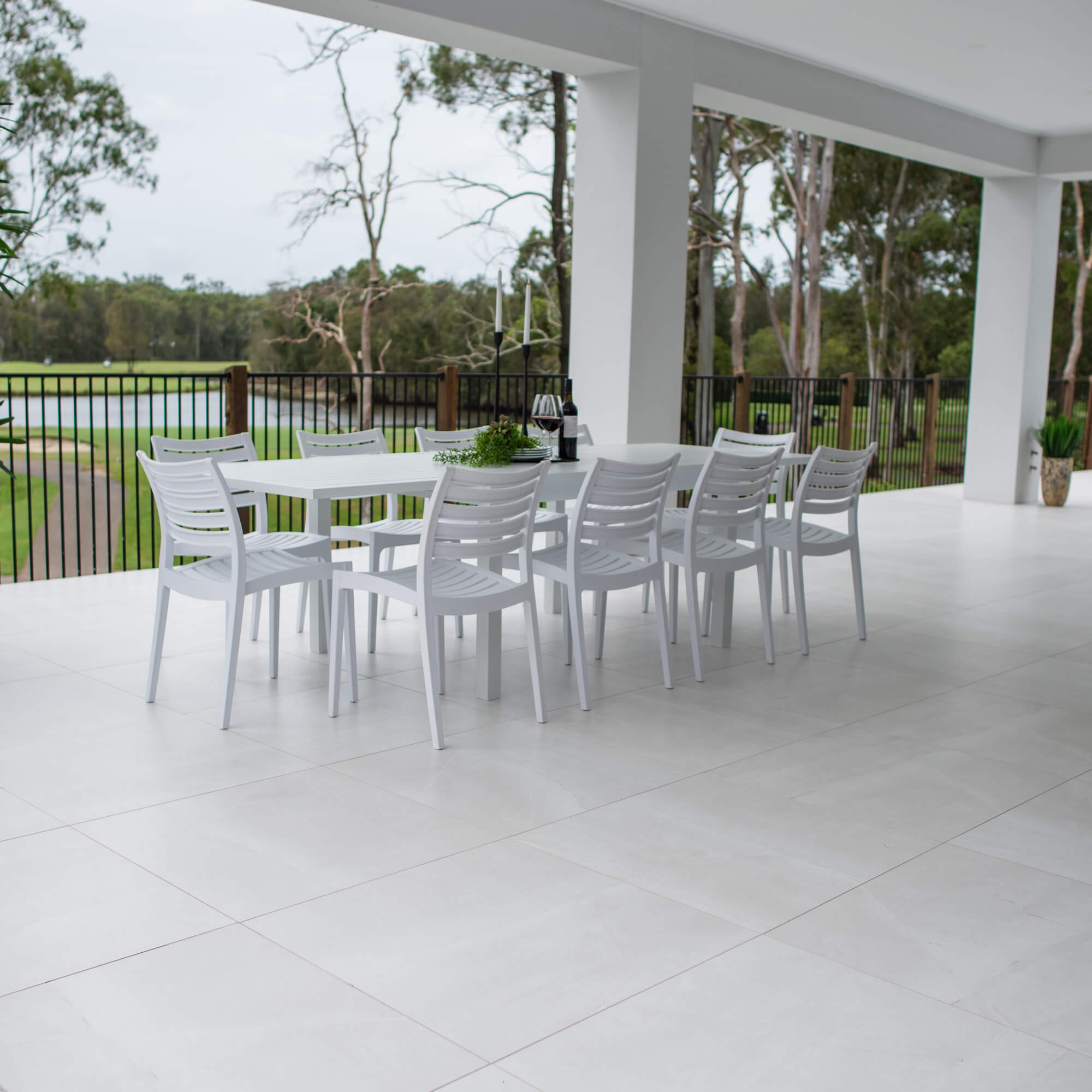 Crafted with Powder Coated Aluminium frames and a Slatted top, the Nara Extension Table is the perfect combination of durability and style. This extension table is great for entertaining larger groups, accommodating 4-6 seats as a 135x102cm table and 10 seats as a 270x102cm extended table. Crafted with polypropylene resin frames, the stackable Apollo Chair is the perfect combination of durability and style. This dining chair is made with UV stabilizers, making it a great option for areas that face the morning and afternoon sun. The slatted design makes it ideal for windy outdoor areas.