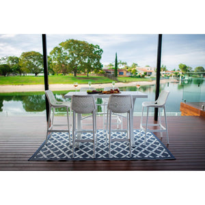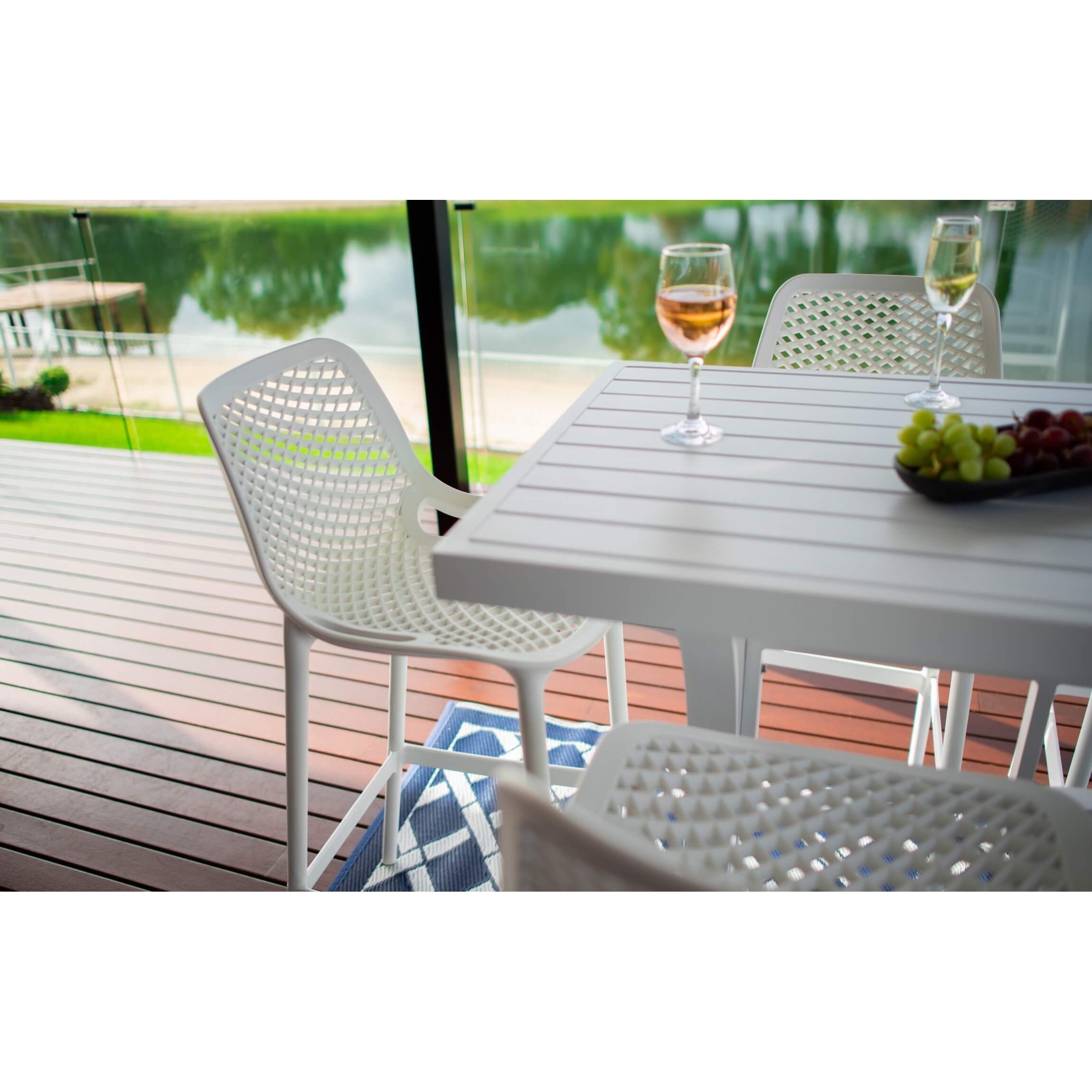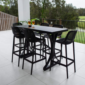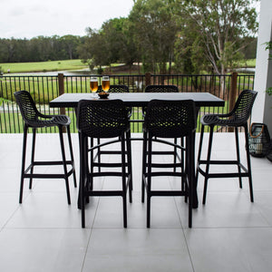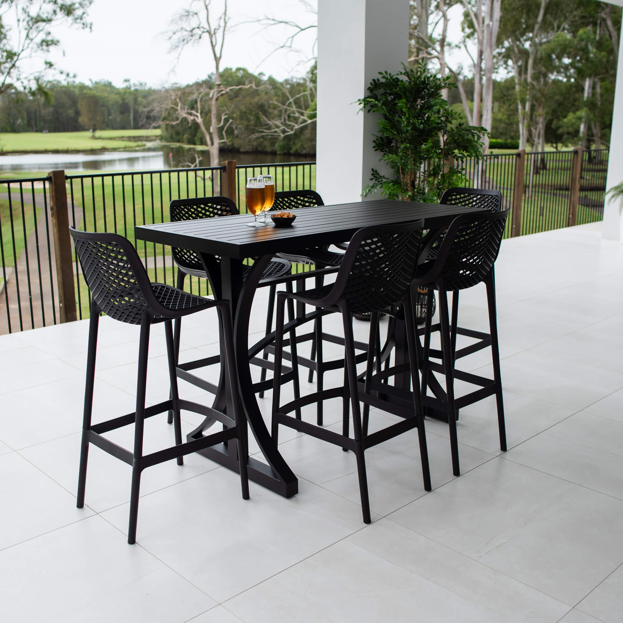 This outdoor setting includes 1 x Bergen Bar Table and 6 x Roma 75 Bar Stools