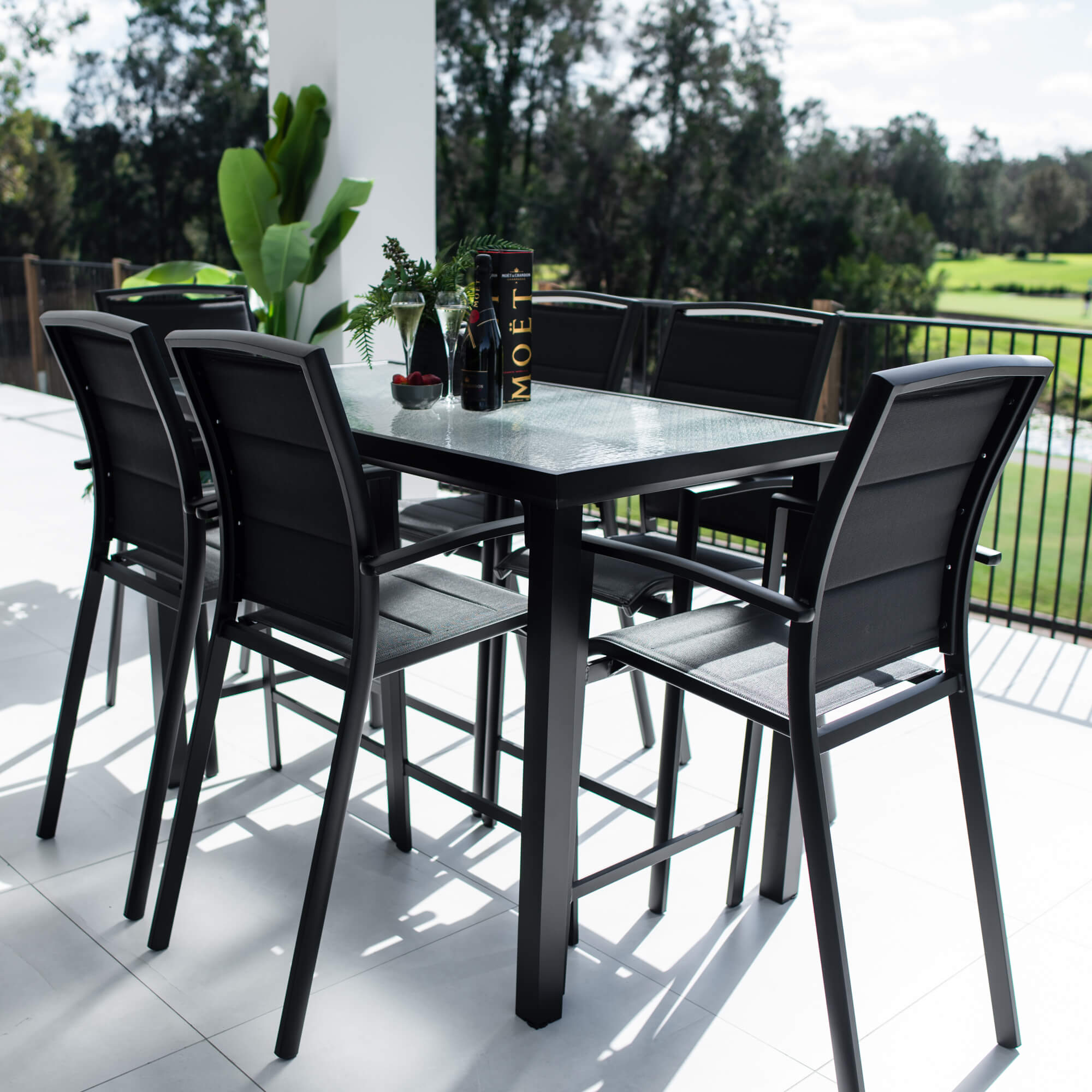 The 7pce Shelby Hudson (150x80) Bar Set is a great addition to any outdoor entertaining area.
