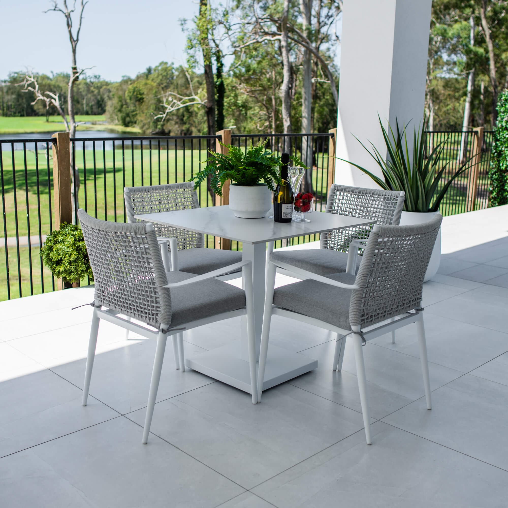 This outdoor setting includes 1 x Lennox Dining Table and 4 x Vienna Dining chairs.